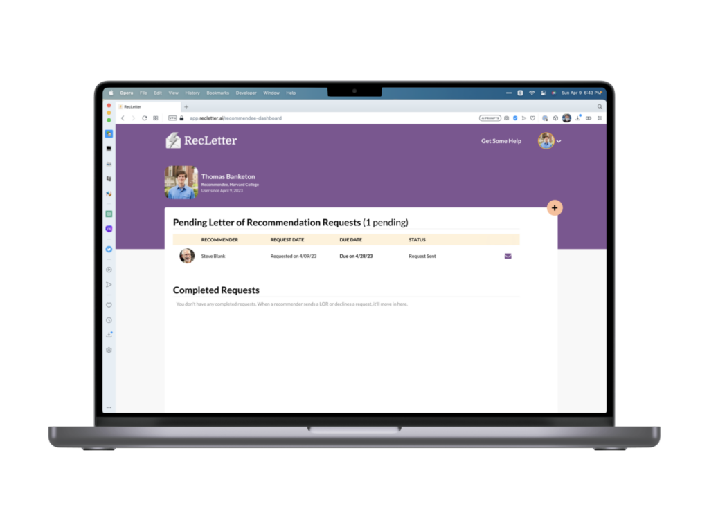 Your professor, coach, or manager uses RecLetter to write and organize their Letter of Recommendations (RecLets). Request your letter below.